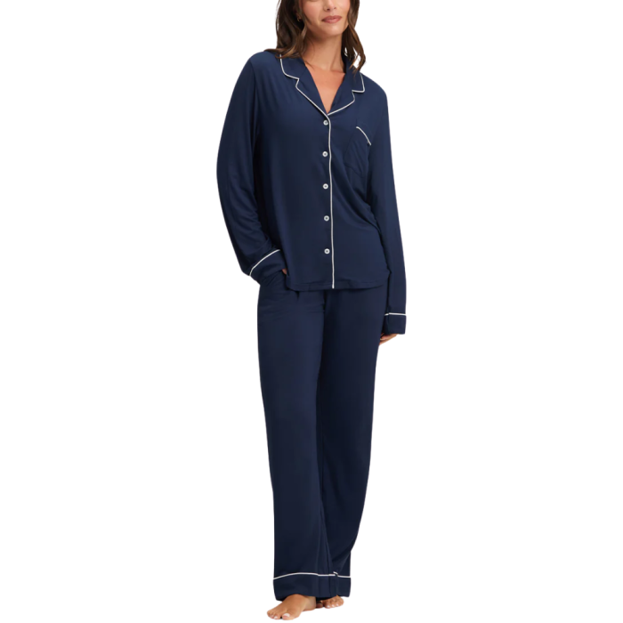 Ζήστε την απόλυτη χαλάρωση με το Πολυτελές Σετ Πυτζάμας Modal ALKISTIS. Κατασκευασμένο από υψηλής ποιότητας ύφασμα modal, αυτό το σετ ύπνου είναι απαλό σαν μετάξι, αναπνεύσιμο και σχεδιασμένο για απόλυτη άνεση. Το κομψό μπλε ναυτικό χρώμα με τις λευκές λεπτομέρειες σε ρέλι προσθέτει μια αίσθηση πολυτέλειας στη νυχτερινή σας ρουτίνα. Το σετ περιλαμβάνει πουκάμισο με κουμπιά, μακριά μανίκια, γιακά και τσέπη στο στήθος, καθώς και χαλαρό παντελόνι με ρυθμιζόμενη μέση.