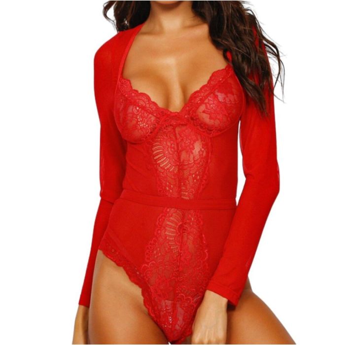 Το μακρυμάνικο κορμάκι DAISY διαθέτει δαντελένιες λεπτομέρειες στο μπροστινό μέρος και βαθύ ντεκολτέ σε σχήμα καρδιάς για να αναδεικνύει το καλοσχηματισμένο σας μπούστο. Είναι see-through αλλά αφήνει πολλά στη φαντασία με παρτό πίσω μέρος έτσι ώστε να μπορέσετε να του εξάψετε την περιέργεια και να περάσετε ένα μοναδικό βράδυ.