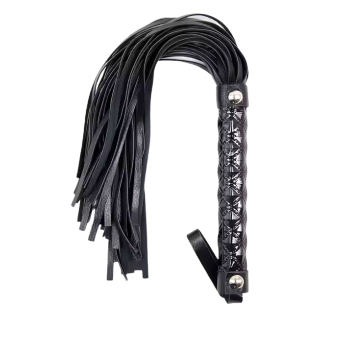 Απαραίτητο αξεσουάρ για όσους θέλουν να εντάξουν το φετιχιστικό παιχνίδι στις ερωτικές τους αναζητήσεις. Το μαστίγιο έχει δερμάτινες ουρές και κόκκινη γυαλιστερή λαβή..