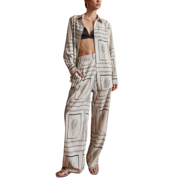 DESERT CACTUS Σετ Υπερμεγέθες Πουκάμισο και Παντελόνι με κομψό σχέδιο με κάκτους