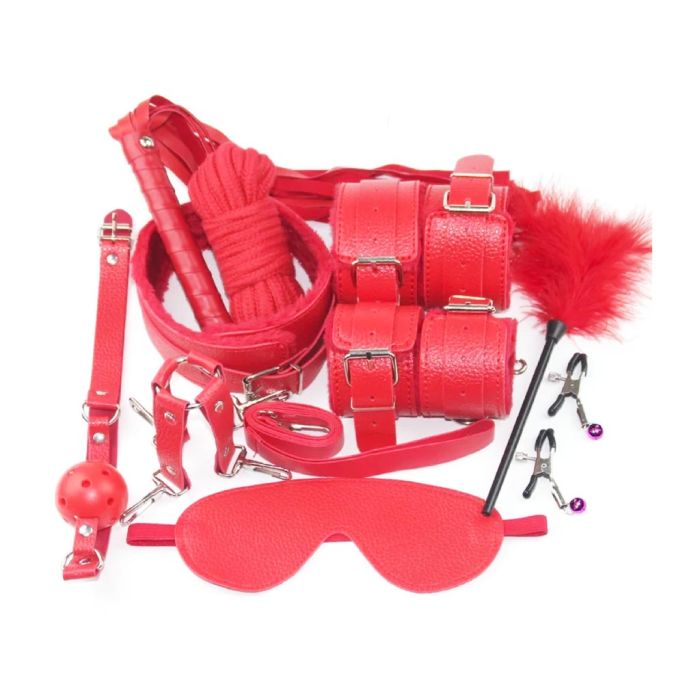 Σετ Ερωτικά Αξεσουάρ Φετίχ Δεσίματος 11 τεμαχίων από δερματίνη σε κόκκινο χρώμα