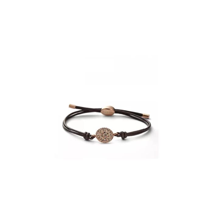 Fossil Γυναικείο Κόσμημα με καφέ δερμάτινο κορδόνι και ατσάλινη λεπτομέρεια σε ροζ χρυσό, JF00118791