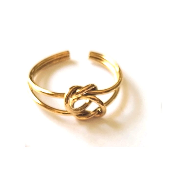 Ότι πιο κομψό και καλοκαιρινό σε δαχτυλίδι για την φετινή χρονιά. Λεπτές μεταλλικές ανοξείδωτες βέργες, μπλέκονται μεταξύ τους και δημιουργούν 2 υπέροχους ναυτικούς κόμπους που συνθέτουν το πιο minimal σχέδιο για να κοσμήσει τα χέρια σας.