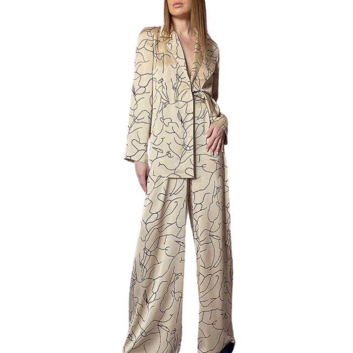 LAYLA Σατέν υφής σετ loungerwear με πουκαμίσα, παντελόνα & μαύρo διακριτικό print