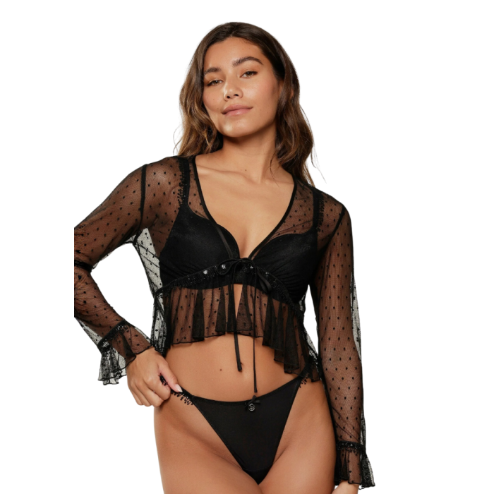 Περιγραφή / LEILA Μαύρο διαφανές μπολερό με πουά μοτίβο και βολάν