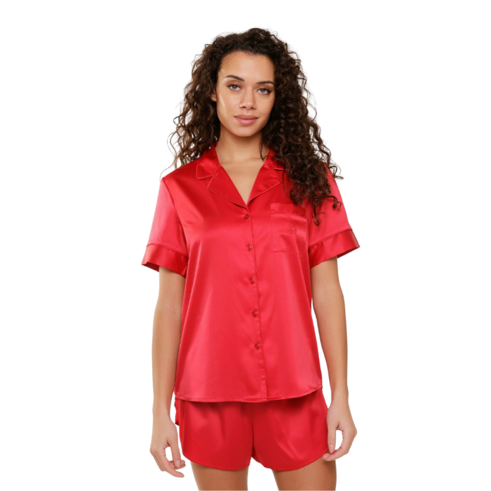 MERRY Σετ πυτζάμας με σατέν υφή, πουκάμισο και σορτσάκι