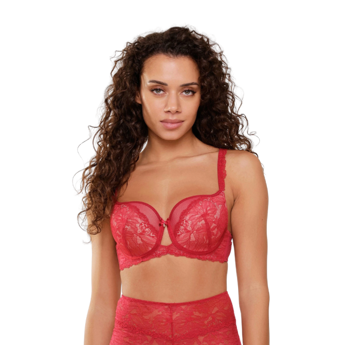 Το σουτιέν NANCY συνδυάζει πολυτέλεια, στήριξη και αισθησιασμό μέσα από ένα εντυπωσιακό κόκκινο σχέδιο και δαντέλα. Η μπανέλα προσφέρει σταθερό κράτημα, ενώ οι διαφάνειες και οι δαντελένιες λεπτομέρειες χαρίζουν μια εκλεπτυσμένη, θηλυκή εμφάνιση. Ένα σουτιέν που αναδεικνύει τη σιλουέτα με κομψότητα και άνεση.