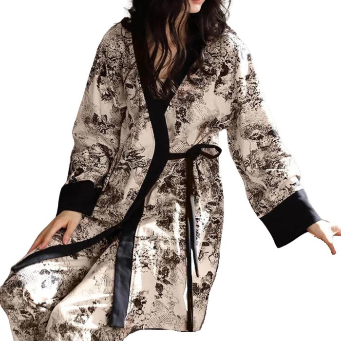 Η άνεση είναι το νούμερο 1 χαρακτηριστικό γνώρισμα που πρέπει να έχουν οι πιτζάμες σου γι’ αυτό και το σετ ONEILA διαθέτει μια φαρδιά πουκαμίσα σε στυλ κιμονό που δένει στο πλάι για γρήγορο κούμπωμα με κρουαζέ εφέ, τοπάκι με τιραντάκι και παντελόνα με σχέδιο από αφηρημένη σκιαγράφηση για να θες να το φοράς όλη τη μέρα!