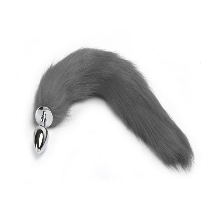 Πρωκτική Σφήνα με χνουδωτή ουρά Tail Plug μήκους 40 cm σε γκρι χρώμα