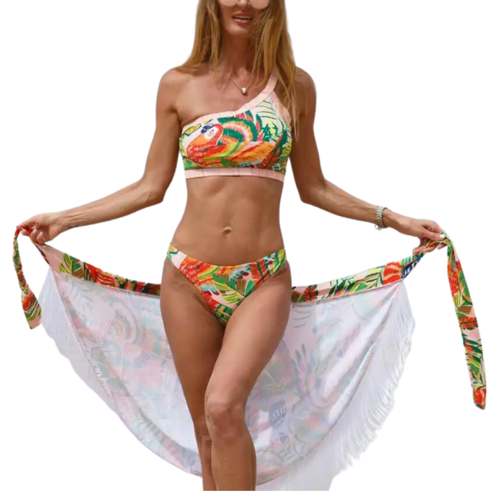 RAYA Πολύχρωμο μπικίνι, εξωτικά σχέδια με τιράντα στον ένα ώμο, και παρεό