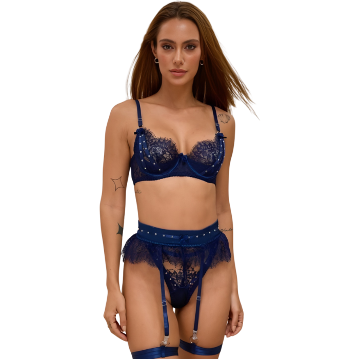 SERENA Δαντελένιο σετ εσωρούχων με ζαρτιέρες και μπανέλα