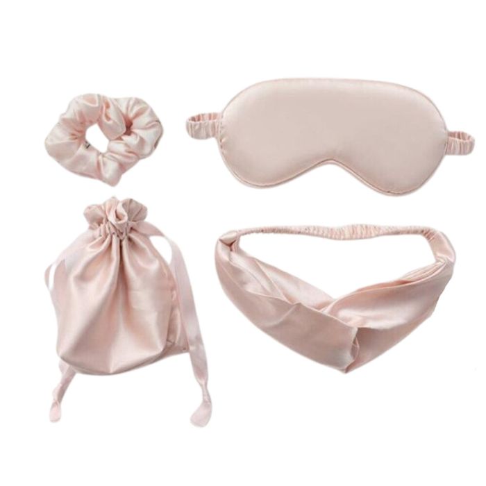 SLEEPY Σετ αξεσουάρ ύπνου 4 τμχ μεταξένιας υφής με μάσκα ύπνου, πουγκάκι, κορδέλα και λαστιχάκι μαλλιών