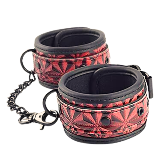 Οι στιλάτες κόκκινες χειροπέδες για αστραγάλους TIE ME UP με μαύρες λεπτομέρειες για όσους λατρεύουν να φυλακίζονται η να φυλακίζουν! Πλήρως ρυθμιζόμενες με ζωνάκι. Συνδέονται με μαύρη μεταλλική αλυσίδα. Κατασκευασμένες από πολύ ανθεκτικό Eco-freindly δέρμα, με μαλακή επένδυση στο εσωτερικό τους για άνετο παιχνίδι. Επιπλέον, μπορείς να συνδέσεις και τις δυο με την ισχυρή αλυσίδα από χάλυβα που περιλαμβάνεται. Ασφαλείς στη χρήση και είναι ευχάριστες στο δέρμα, ώστε να μπορείτε να τις σφίξετε περισσότερο χωρίς φόβο για τραυματισμούς ή γδαρσίματα.