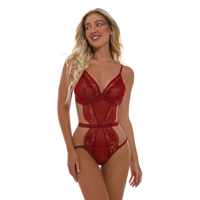 ZELDA Κορμάκι με δαντέλα, διαφάνειες κσι ανοιχτή πλάτη